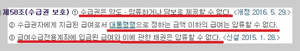 국민연금법 제58조에는 국민연금 수급권에 대한 보호 내용이 적혀 있습니다.