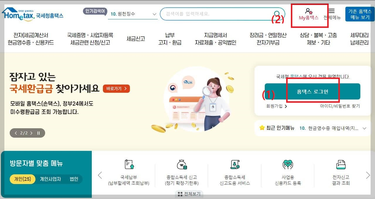 1. 홈택스 로그인 > My홈택스