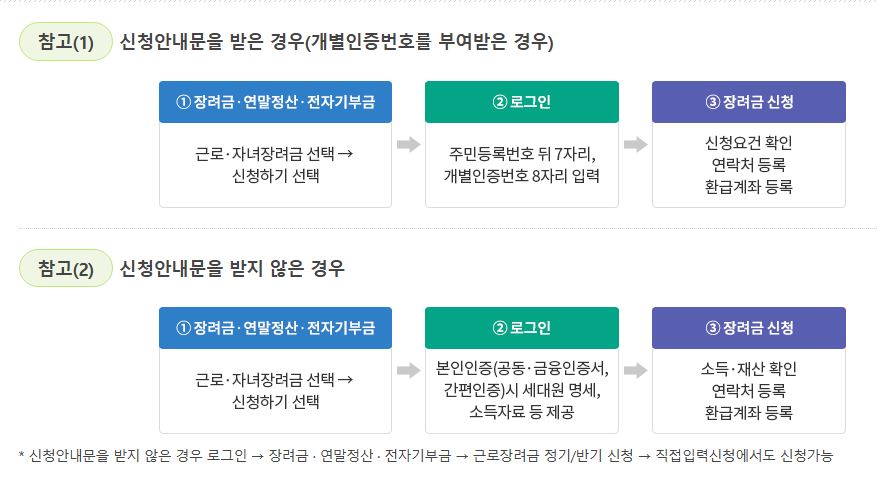 근로장려금은 한 가구당 1 명만 신청이 가능하므로 중복신청되지 않도록 주의하셔야 합니다.