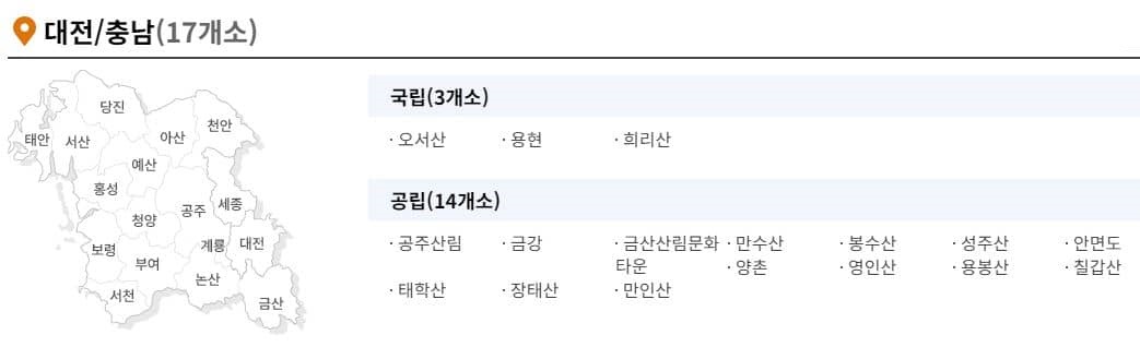 | 대전/충남 | 오서산, 용현, 희리산 |
